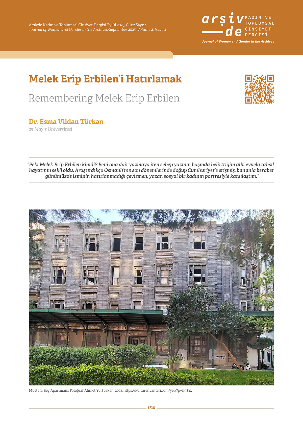 I obtained photographs of her and details of her personal life through her daughter, Ayşe Mitchell Erbilen, who lives in Geneva and with whom I made contact. Ayşe shared memories of her mother’s daily life, reading preferences, and friends she remembered from the Women’s Union. In return, I presented her with her mother’s little-known writing career and the pieces she had published in various outlets. Researching a woman writer who witnessed the fall of the Ottoman Empire into which she was born, the National Struggle, the early years of the young Republic, and two world wars—yet whose name has somehow been erased from memory—was a source of great excitement and joy for me. Even more meaningful, however, was hearing her daughter say that “being remembered after so many years has brought peace to her mother’s soul.” I hope further studies will be carried out on Melek Erbilen.